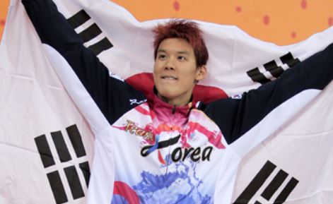 한국 수영 최초의 올림픽 금메달을 따냈던 박태환 선수입니다.