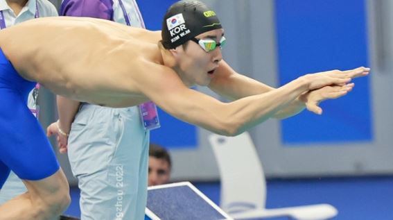항저우 아시안게임에 출전한 김우민 수영선수입니다.