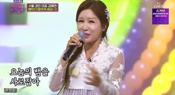 남편의 사업 실패로 온 식구를 책임져야 했던 김혜연 가수에요.