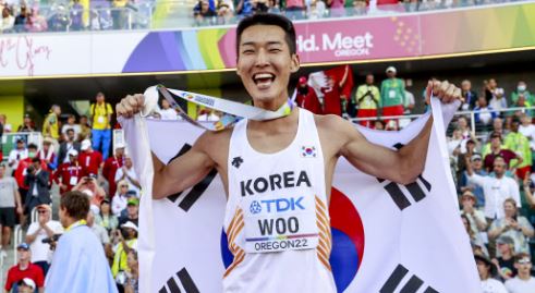 2022 세계실내육상선수권대회 금메달을 따낸 우상혁 선수입니다. 2022 세계육상선수권대회 은메달을 따내기도 했죠.