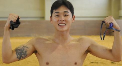 오른팔에 문신 타투가 있는데요. 나침반, 왕관, 닻, 고래 문신으로 메달을 오래 걸고 있겠다는 뜻이라고 합니다.