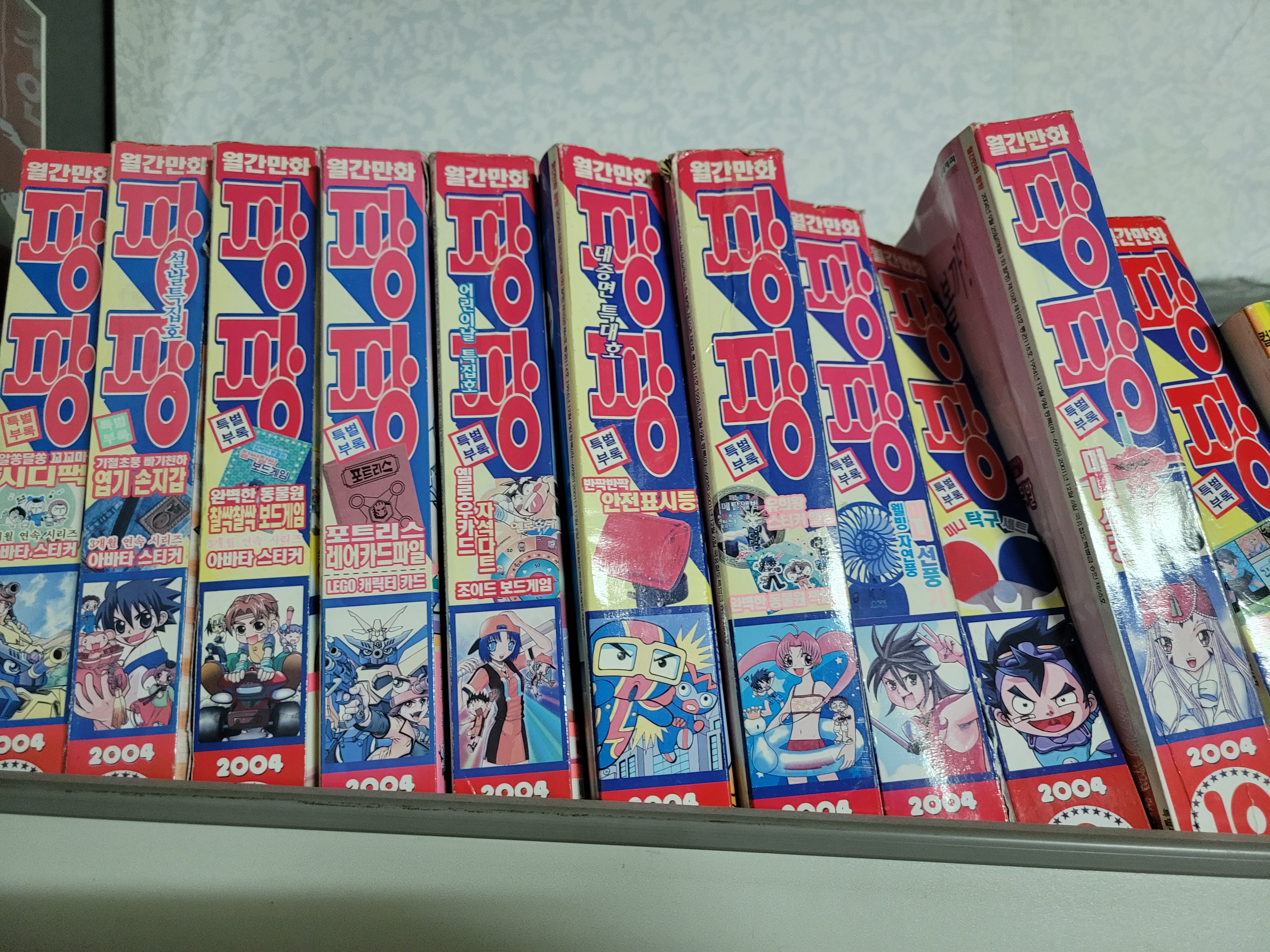 1995년부터 발매된 대원씨아이 출판사의 만화잡지 팡팡입니다. 접지전사 만화책은 팡팡에서 연재된 만화입니다. 전 1999년부터 2003년정도까지 팡팡 잡지를 모았습니다. 부록을 주면서 가격도 계속 올리다보니 사기가 점점 힘들어졌었습니다.