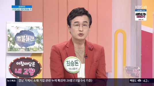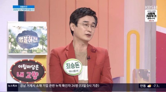 작년에도 출연했었구요. 그동안 가요무대, 아침마당, 전국노래자랑에도 출연했던 최승돈 아나운서입니다.