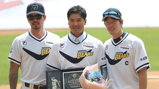 두산 베어스와 롯데 자이언츠의 경기에서 은퇴식을 치뤘죠. 2008년 지명타자로 전향했던 홍성흔입니다.